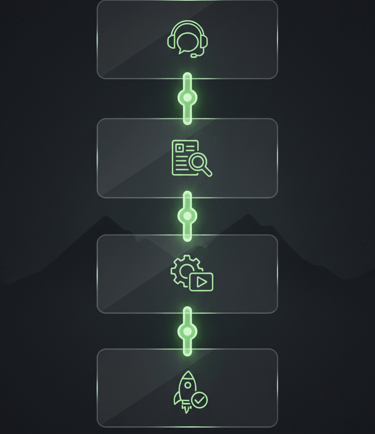 1) Reunión Diagnóstico (30 min): auditoría gratis, sin compromiso, para evaluar las necesidades y fricciones actuales y explorar qué procesos podrían automatizarse, herramientas utilizadas y nivel de formación actual del capital humano.